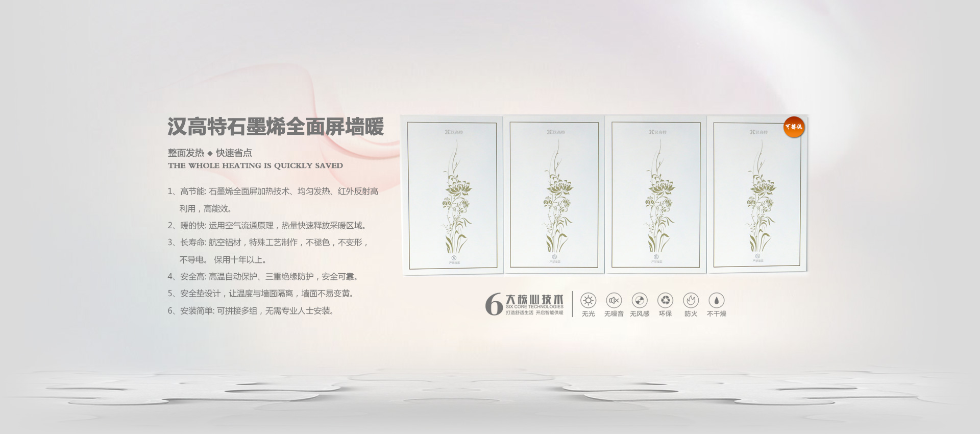 漢高特自主研發(fā)的新型石墨烯電地暖、石墨烯電采暖、電熱膜電地暖、碳纖維電暖、碳晶墻暖畫(huà)、電地暖廠(chǎng)家加盟、電熱膜工廠(chǎng),采用新設(shè)計(jì)、新材料在行業(yè)內(nèi)首創(chuàng)了耐強(qiáng)酸、耐強(qiáng)堿、防火阻燃、防水防潮等特點(diǎn)。產(chǎn)品暢銷(xiāo)江蘇、四川、甘肅、山西、河北、河南、內(nèi)蒙、新疆等地。